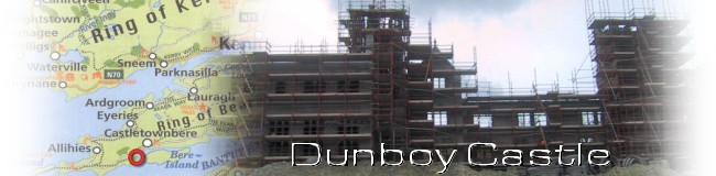 Bart wilde zo graag een echt kasteel zien. We besloten naar Dunboy Castle te lopen. Wat een teleurstelling toen het hele kasteel in de stijgers stond. Het piratenschip was natuurlijk nog wel echt!